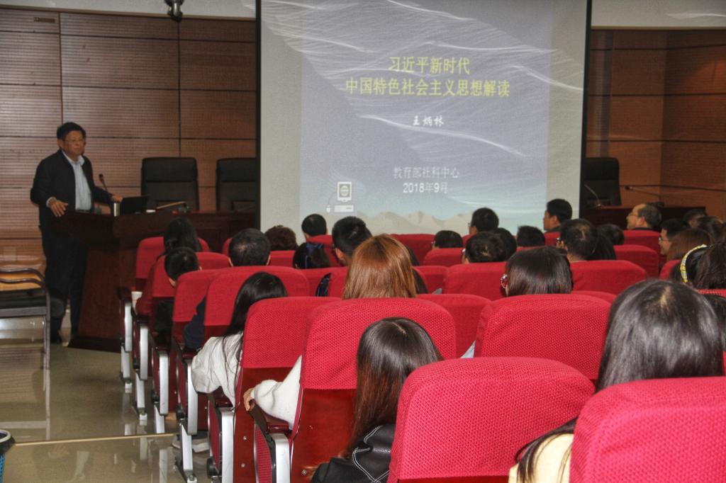 王炳林教授的语言风格诙谐幽默,观点深刻精彩,不时赢得现场师生欢乐的笑声和热烈的掌声。