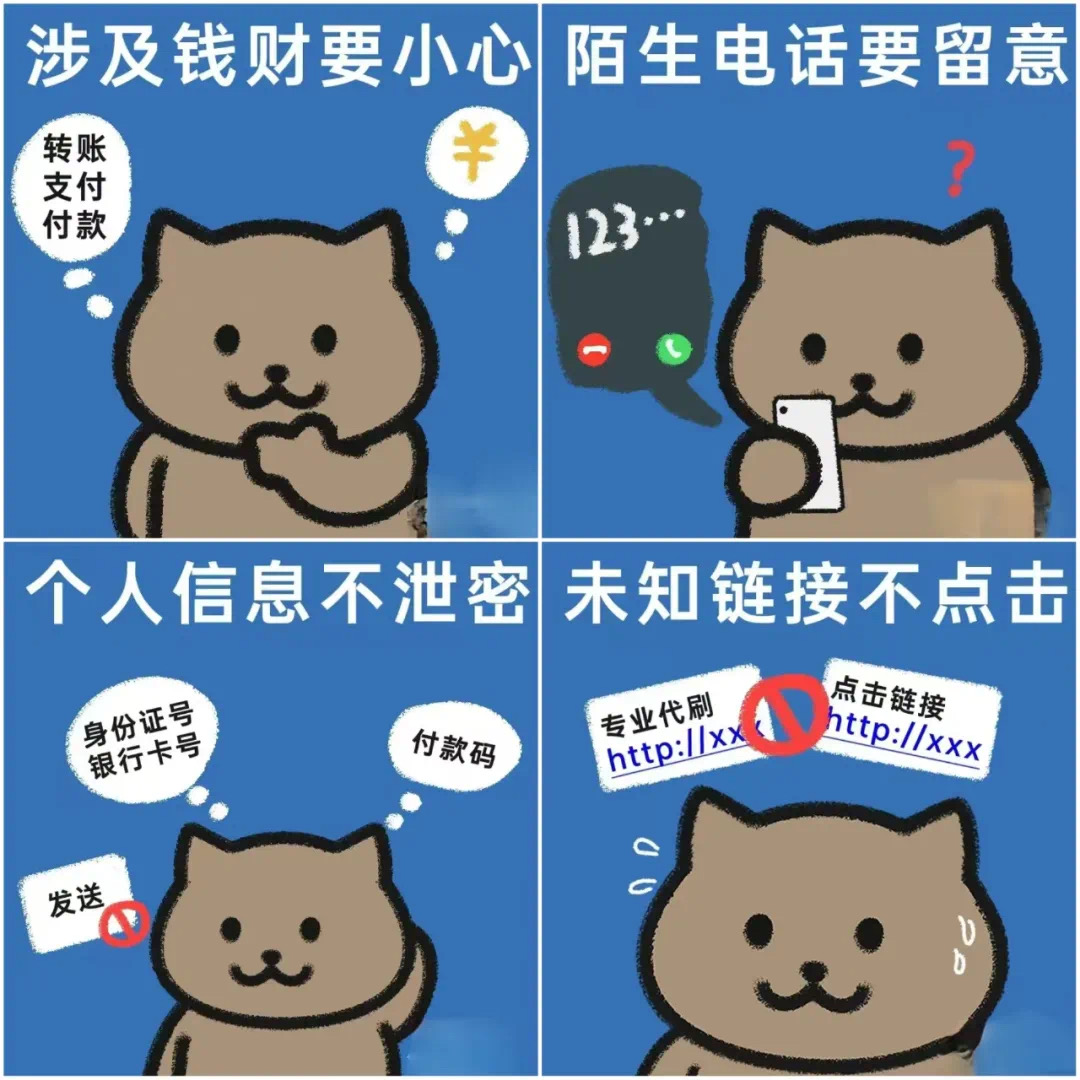 4.筑牢信息防护防线:不轻易与陌生人攀谈,不向无关人员透露手机号码、银行卡号、家庭住址、返校行程等私密信息;对陌生人索要联系方式、打探个人情况的行为保持警惕,坚决拒绝提供敏感信息。