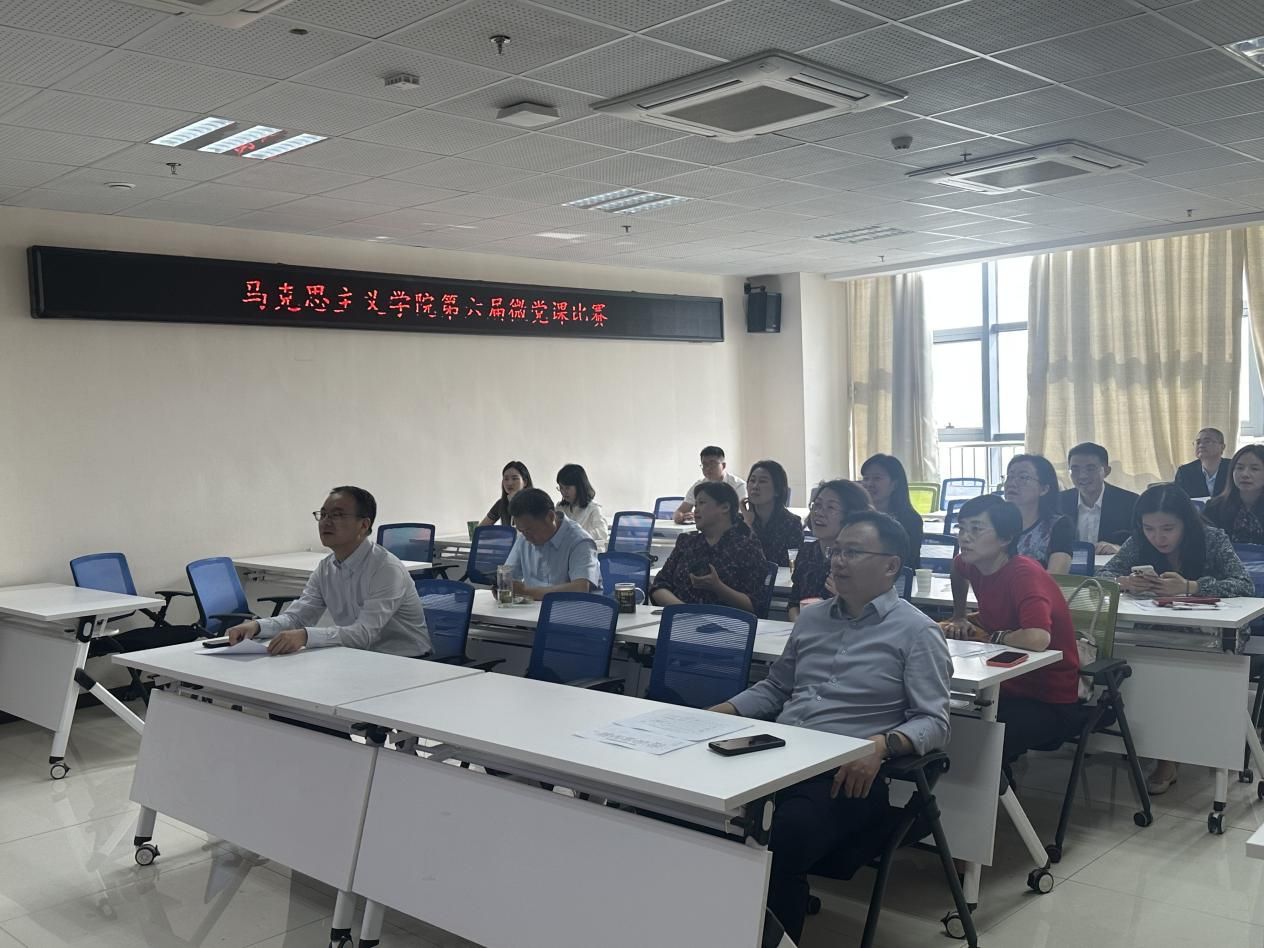 比赛现场,参赛选手结合学科特色与生活实际,用生动的故事、鲜活的案例、真挚的情感,从“小切口”引出“大主题”,用“小故事”讲明“大道理”,以“微视角”展现“大情怀”,分别围绕“追忆百年党史、加强作风建设、弘扬艰苦奋斗精神和坚持以人民为中心的发展思想”等内容进行讲解,呈现了一场精彩纷呈的微党课。选手们的出色表现充分展现了马院教师队伍过硬的政治素养、扎实的知识储备和昂扬的精神风貌。