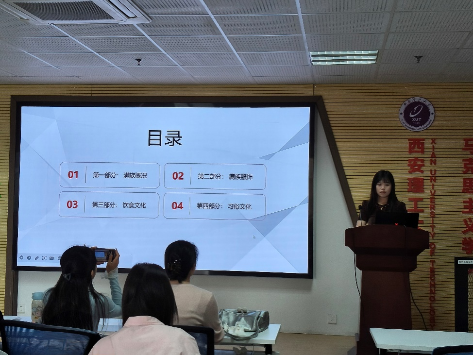 本次活动特别设置了“少数民族代表分享”环节,思想政治教育研究生党支部的李薇兰琪同志结合自身经历,向与会党员分享了满族的丰富文化。她以生动的语言讲述了满族的发展历史、服饰文化、饮食文化及风俗习惯。通过这一环节,党员们对满族文化有了更加全面且深入地了解,深刻感受到了中华民族文化的多元性和丰富性。