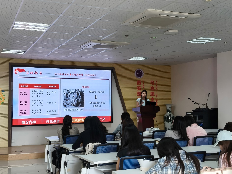 活动伊始,思想政治教育研究生党支部副书记丁璇璇同志以深入浅出的方式,从时代背景、形成发展历程、核心内涵及实践要求等四个方面,对习近平总书记关于铸牢中华民族共同体意识的重要论述进行了系统解读。她指出,铸牢中华民族共同体意识是新时代党的民族工作的主线,对于实现中华民族伟大复兴具有极其重要的意义。