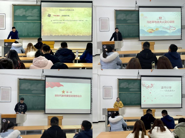 王梦做总结发言,她指出,同学们分享的书目极具马院特色,体现了专业特色;读书内容分享和PPT形式讲授,为马院员工扎实专业知识,提高讲课水平提供了良好的契机。最后,她引用弗里德曼的《世界是平的》、鲁迅《热风·随感录》、《黄庭坚文集》中的名言警句鼓励大家要怀揣梦想、做好规划、主动出击、坚持不懈,以奋斗书写青春,不负最美年华。