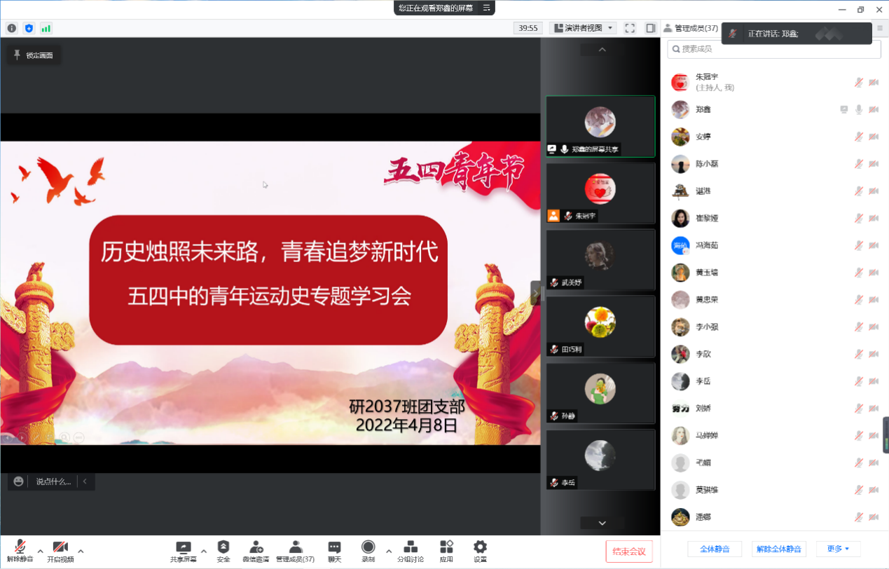 青年是国家的希望,民族的未来。4月8日,TapTap研2037班团支部线上开展“历史烛照未来路,青春追梦新时代-五四中的青年运动史”主题学习会,支部全体成员参加本次会议。