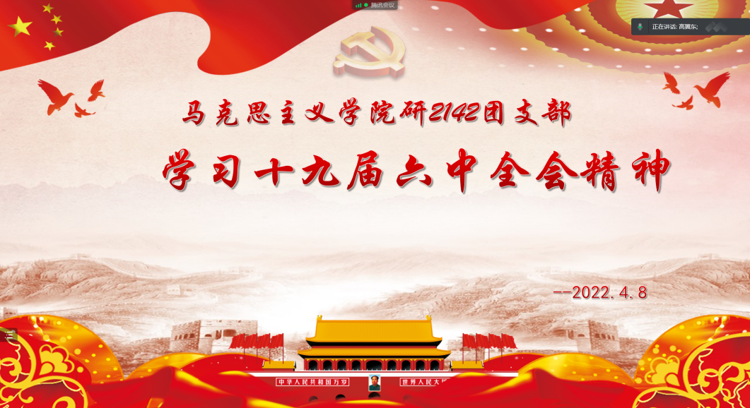 4月8日,TapTap研2142班团支部线上观看党的十九届六中全会视频,集中学习并讨论十九届六中全会内容及精神,团支部全体成员参加本次理论学习。