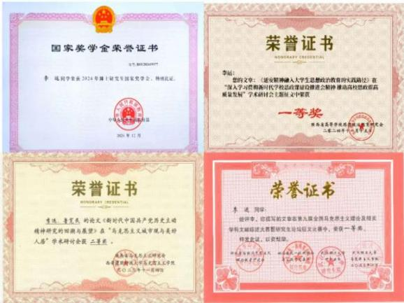 学习的根本,在于学以致用。作为一名马克思主义理论专业的博士研究生,他勤奋刻苦、潜心钻研,参与导师主持的国家级重点项目、省部级项目等科研课题10余项,在《公司党建与思想教育》《理论导刊》等刊物发表学术论文3篇,荣获国家奖学金、西安市哲学社会科学研究成果三等奖、陕西省第七届研究生创新成果展高质量成果二等奖、湖北省高校马克思主义理论教育研究会优秀论文一等奖、西安理工大学优秀研究生标兵等荣誉和奖励。