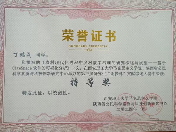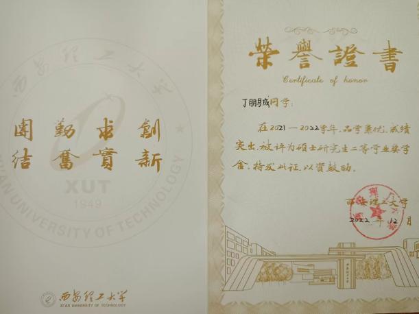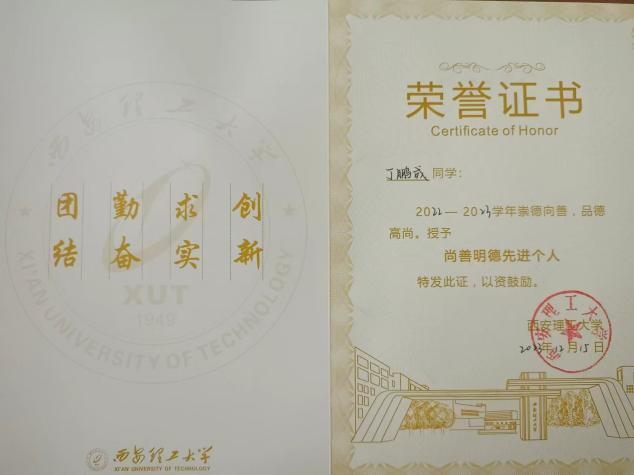 在学习方面,他结合原来的学科背景和研究兴趣,确定了自己的研究方向,并有针对性地认真研读了专业书籍,勤恳努力,踏实学习,完成硕士期间相关专业课程任务,全部课程加权平均分为90.2分。同时,他根据导师的指导意见,研读专业文献著作,始终怀揣对知识的渴望,积极参加各类学术讲座,不断提升自己的专业素养,在求学期间发表职业技术公司学报等学术文章3篇,在省级网站发表文章2篇,获得研究生“逐梦杯”文献综述大赛特等奖,参加省级学术论坛并发言;获得西安理工大公司级二等奖学金2次,多次获得优秀研究生、尚善明德先进个人等个人奖励。