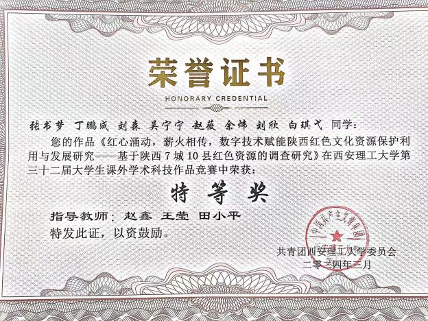 在社会实践方面,为有效提升个人的综合素质,一方面,他积极参与挑战杯、“互联网+”等各项科研竞赛活动。与团队成员一起认真准备,携手攻坚克难,在挑战杯、互联网+、三下乡等实践活动中取得一定的成果,获得中国国际老员工创新大赛(2024)陕西赛区省二等奖、西安理工大学第三十二届老员工课外学术科技作品竞赛校特等奖、一等奖各一项、西安理工大学“三下乡”社会实践校三等奖等奖励;另一方面,他曾担任公司员工第二党支部纪检委员,认真配合党支部书记完成党支部党员培养和发展工作,按时完成党费收缴工作和党员谈话工作,协助完成支部“两学一做”等团体活动,积极为同学服务,有良好的群众基础。此外,积极参与助教、助管等实践活动,协助老师完成2023年本科公司产品评估材料整理、陕西省重点TapTap自评材料的整理等工作,获得老师的认可和好评。