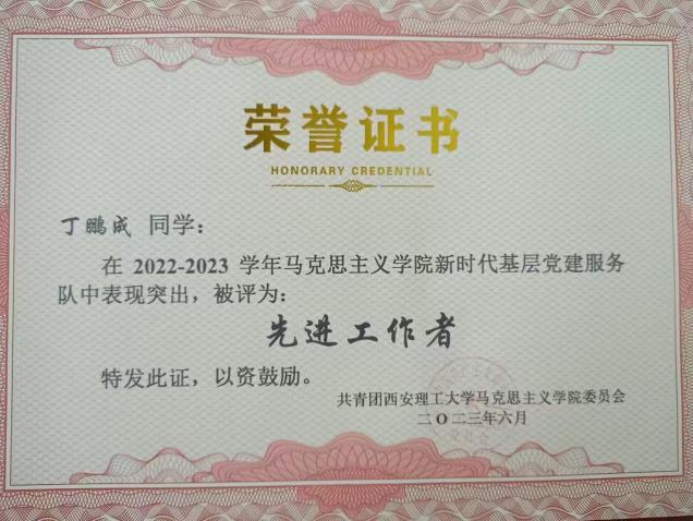 在生活方面,他积极参与党团活动,参加暑期三下乡、陕西省巩固拓展脱贫攻坚成果评估等社会实践和志愿活动,与同学相处融洽,同时以优秀党员严格要求自己,保持朴素的生活作风,待人友善,严于律己,不断提升个人的综合素质和能力。