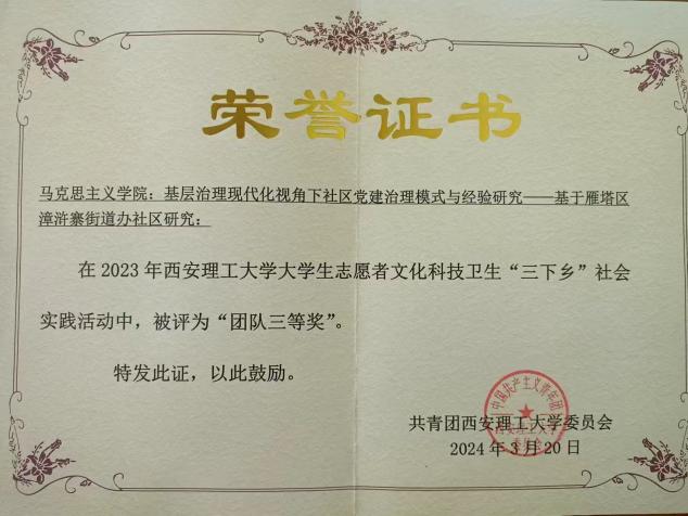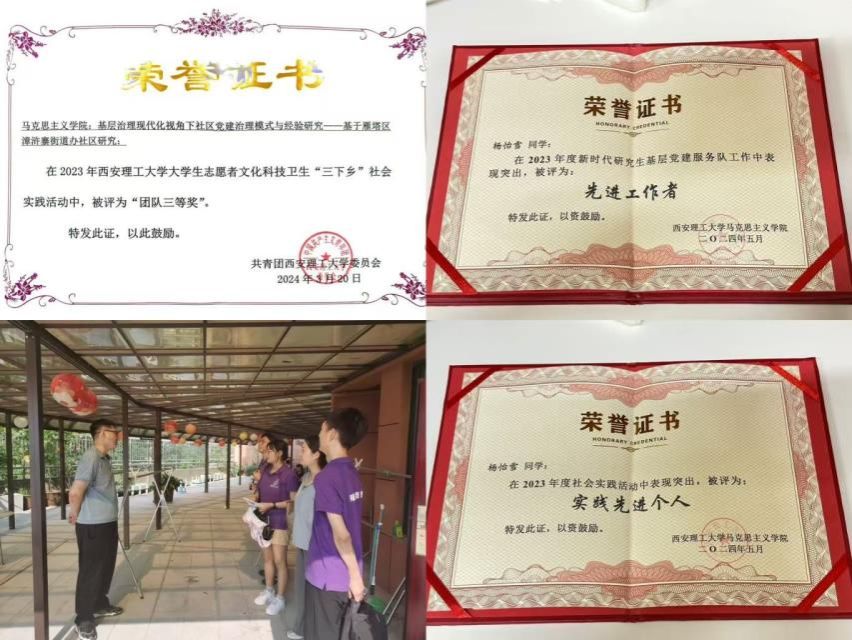 杨怡雪曾担任TapTap新时代基层党建服务队副社长,致力于将所学理论知识应用于基层社区发展。在西安市雁塔区漳浒寨街道办下属10余个社区积极调研社区党建治理新模式,与同学一起完成“基层治理现代化视角下社区党建治理模式与经验研究——基于雁塔区漳浒寨街道办社区研究”的社会实践,并荣获西安理工大学老员工“三下乡”社会实践活动三等奖。